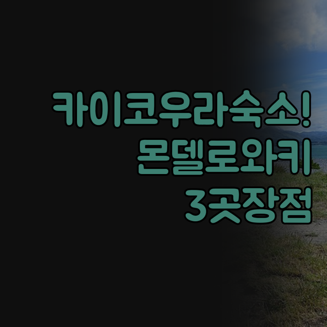 이미지숙소명특장점예약몬델로 카이코우라고래 관찰 센터 바로 앞, 깨끗하고 넓은 객실, 한국인 친절한 호스트, 완비된 주방, 일부 객실 스파 욕조예약하기와키 스테이유르트, 기차칸 등 독특한 글램핑, 농장 동물 먹이주기 체험, 가족 여행 최적, 2020년 리모델링예약하기헤리티지 코트 모터 로지해변 도보 5분, 레스토랑/슈퍼마켓 인접, 산 전망, 가성비 좋은 모텔, 바비큐 시설예약하기“여행의 절반은 어디서 묵느냐에 따라 결정된다는 말, 들어보셨나요? 카이코우라는 자연이 살아있는 곳이라 숙소 선택이 더욱 중요하더라고요.”최근에 뉴질랜드 남섬의 작은 항구 도시 카이코우라를 다녀왔습니다. 돌고래, 고래, 바다표범까지 가까이에서 볼 수 있는 이곳에서 가장 고민됐던 건 바로 숙소였어요.위치, 가격, 컨셉까지 제각각 다른..